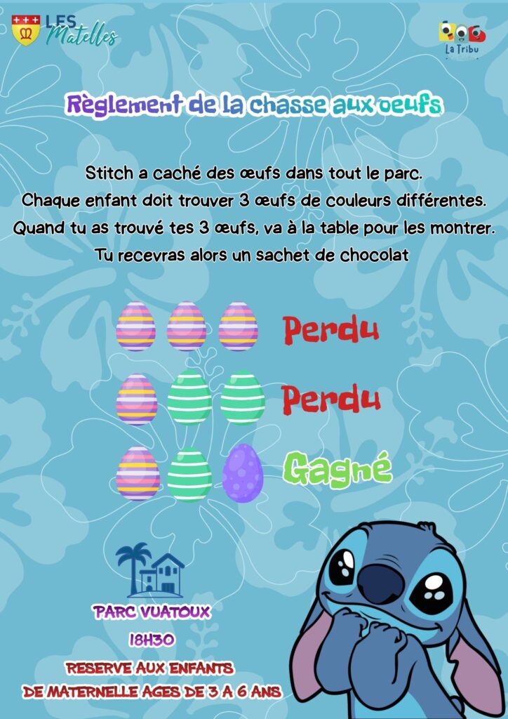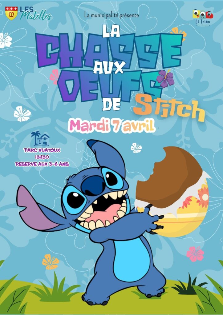 Le Service Enfance Jeunesse invite tous les petits explorateurs de 3 à 6 ans à une mission très spéciale : une chasse aux œufs sur le thème de notre alien préféré, Stitch ! 🌺🥥